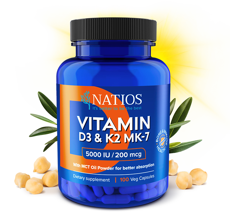 NATIOS Witamina D3 & K2 (MenaQ7 MK-7), 5000 IU & 200 mcg, 100 kapsułek