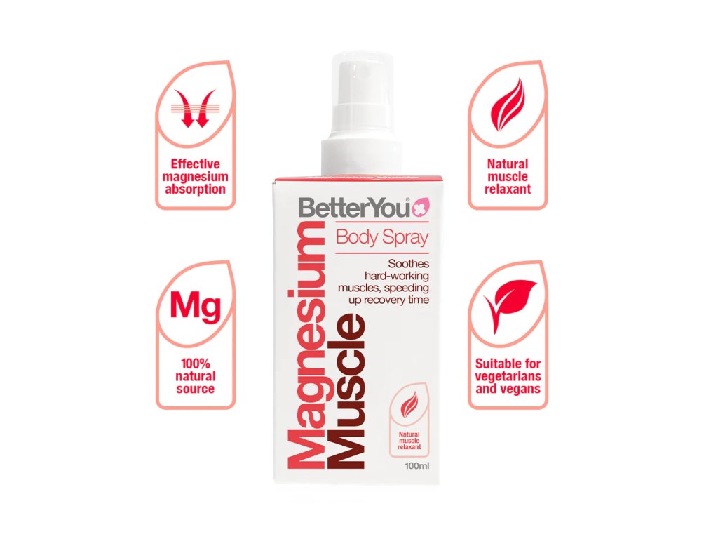 BetterYou Magnesium Oil Body Spray Muscle, Magnezowy olejek do ciała w sprayu – mięśnie, 100 ml