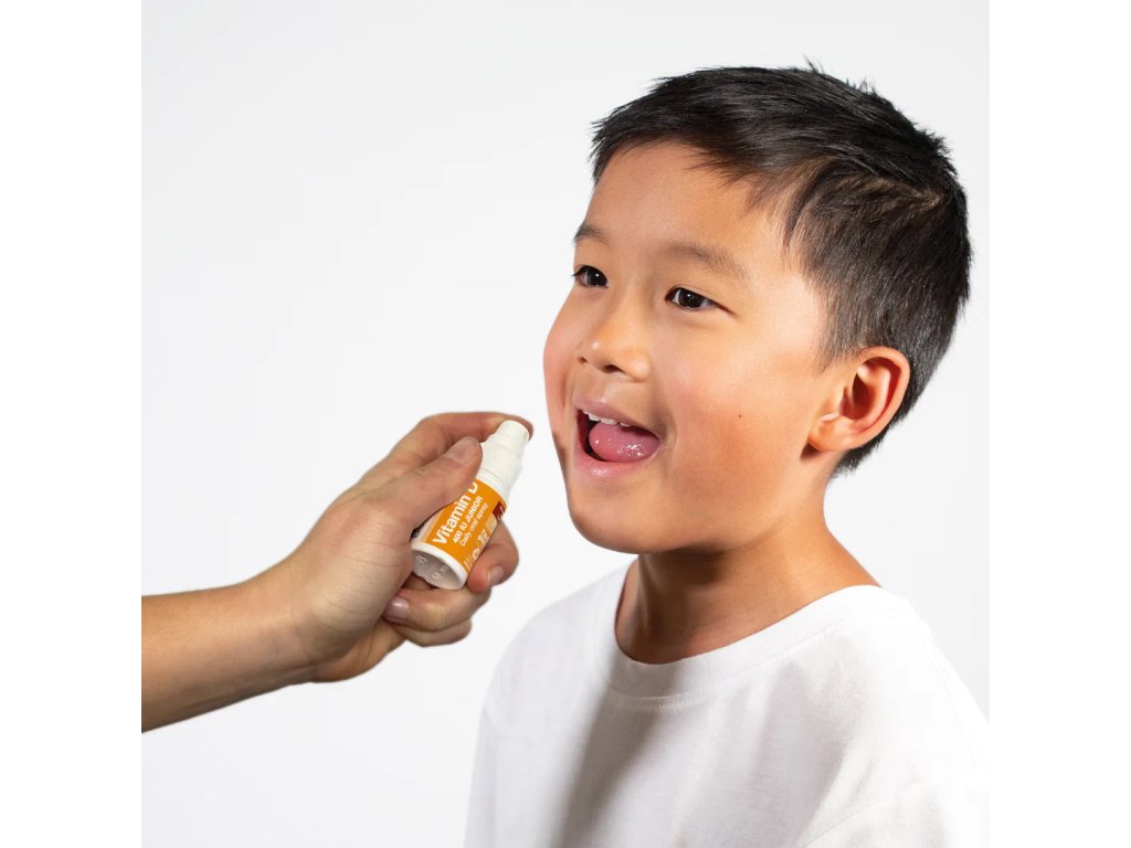 Witamina D w sprayu dla dzieci od 3 lat. Witamina D należy do witamin rozpuszczalnych w tłuszczach odpowiedzialnych za zwiększenie wchłaniania wapnia, magnezu i fosforanów w jelitach oraz za wiele innych funkcji biologicznych. Powszechnie wiadomo, że większości z nas, w tym dzieciom, brakuje witaminy D. Odpowiedni poziom witaminy D pełni kilka ważnych funkcji. Do najważniejszych należy już wspomniana regulacja wchłaniania wapnia i fosforu, co wpływa na kondycję i rozwój kości oraz zębów. O smaku mięty pieprzowej. Bez sztucznych barwników i aromatów.