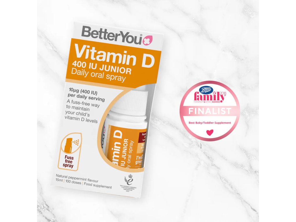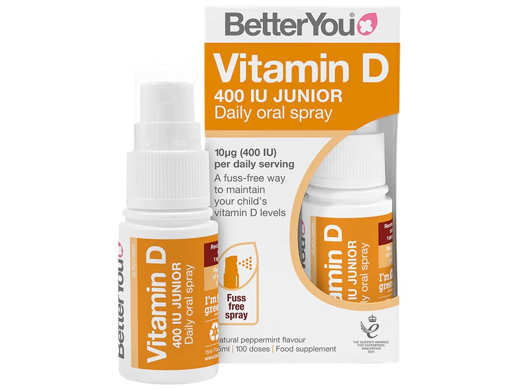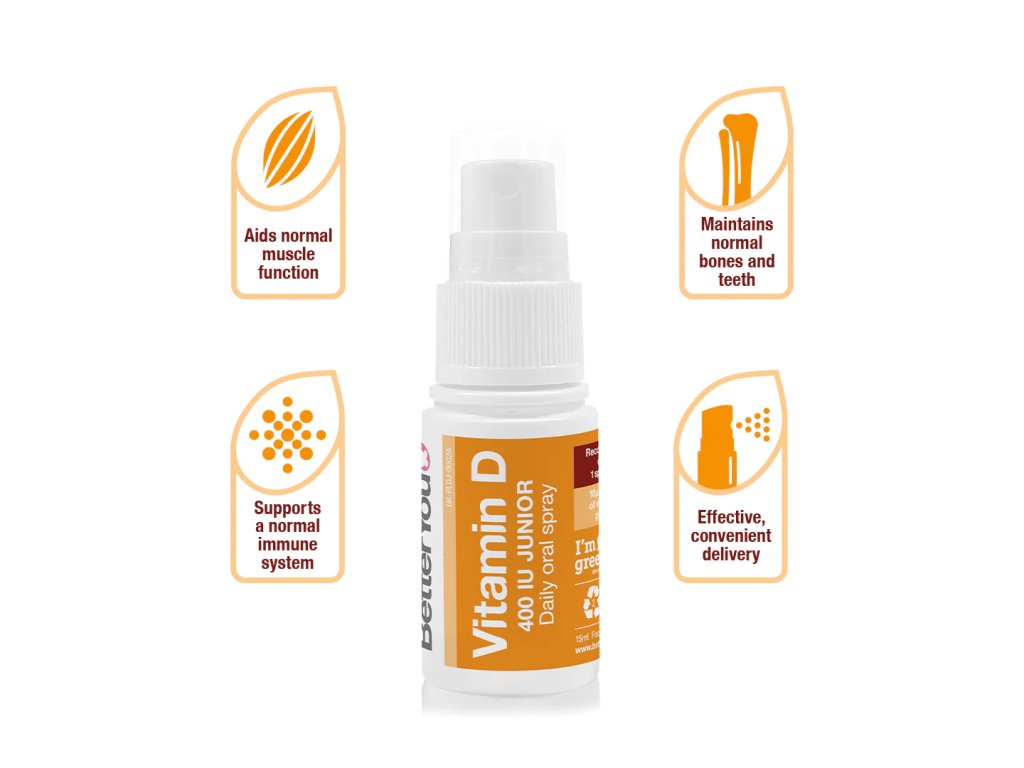 BetterYou Vitamin D 400 IU Junior Daily Spray, Spray doustny dla dzieci 3+, 15 ml (100 aplikacji)