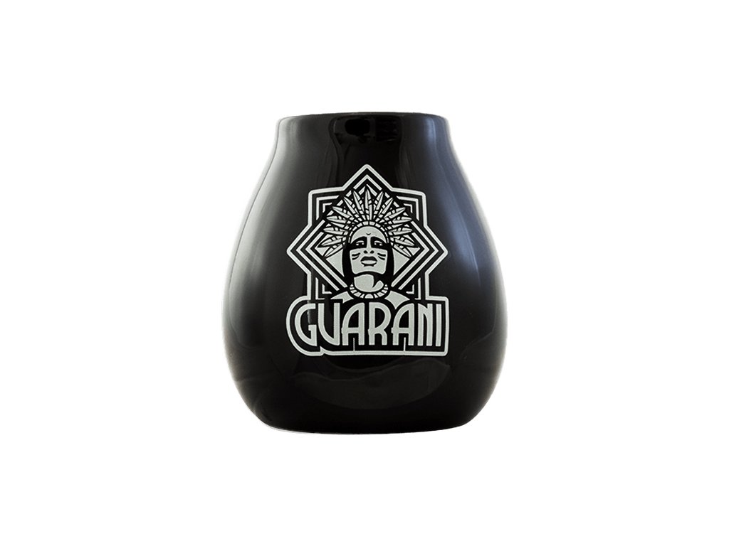 Czarna ceramiczna kalabasa Guarani z nadrukiem. Pojemność 350 ml.