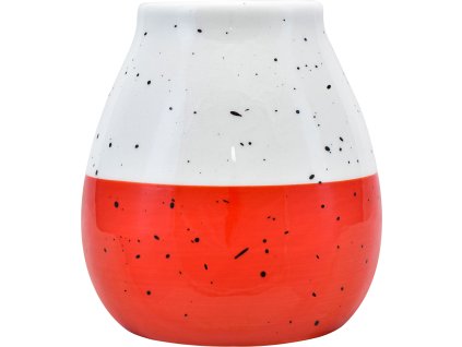 Czerwono-biała ceramiczna kalabasa z nakrapianym wykończeniem o pojemności 350 ml.