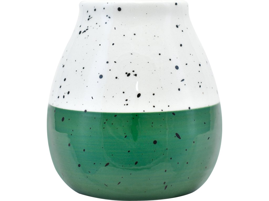 Zielono-biała ceramiczna kalabasa z nakrapianym wykończeniem o pojemności 350 ml.