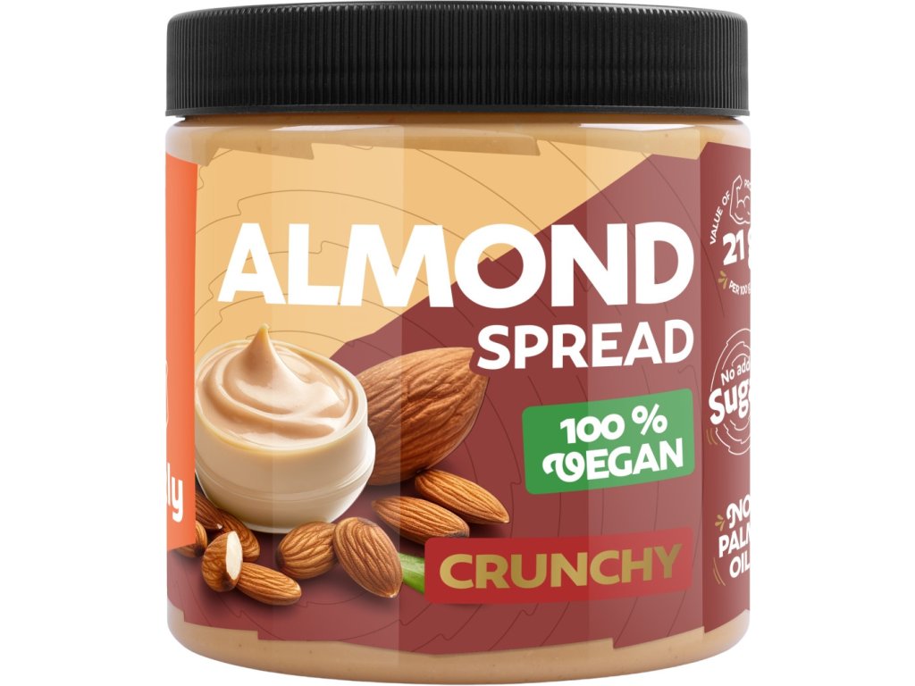 Krem migdałowy jest produkowany z delikatnie mielonych prażonych migdałów, a dla przyjemnej tekstury dodawane są także większe kawałki. Dzięki temu łączy aksamitną kremowość z delikatną chrupkością. Możesz go jeść prosto z łyżeczki lub jako pyszny dodatek do owsianki lub deseru.