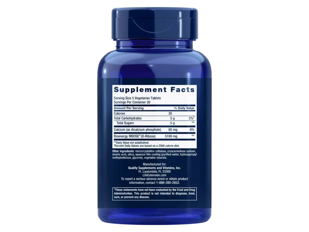 Life Extension D-Ribose, D-Ryboza, 1020 mg, 100 tabletek
