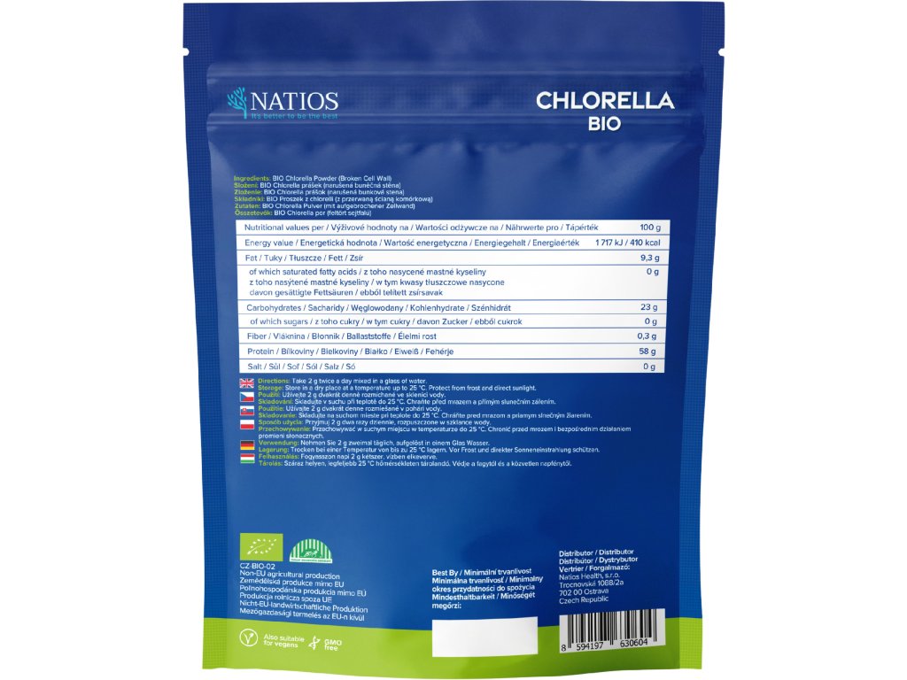 NATIOS BIO Chlorella pyrenoidosa w proszku, 100 g