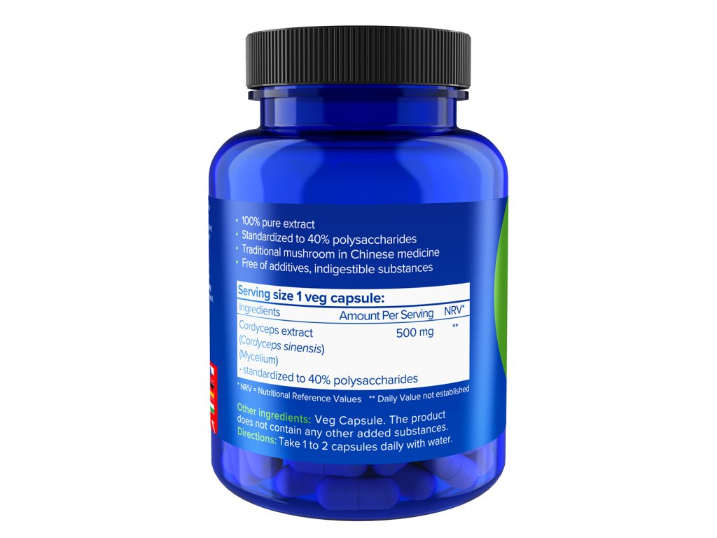 NATIOS Cordyceps Extract, 500 mg, 40% polisacharydów, 90 kapsułek wegańskich