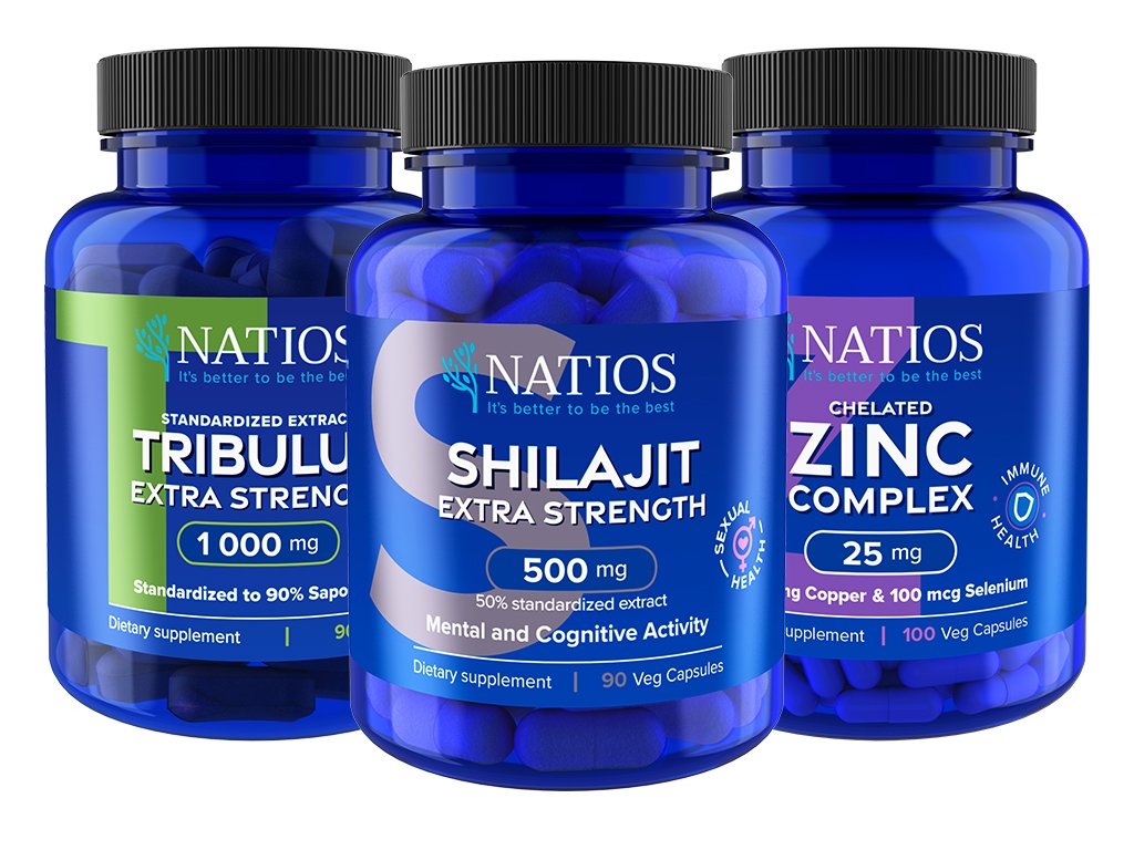 NATIOS Korzystna zestaw Męska Witalność Tribulus, Shilajit, Cynk