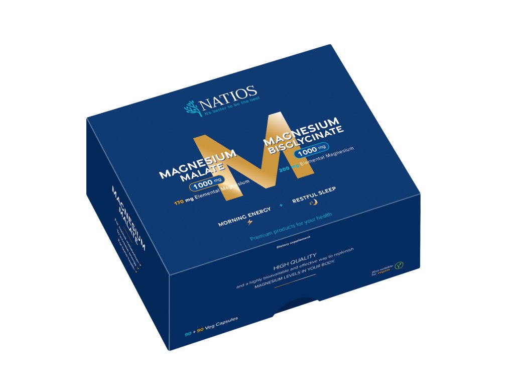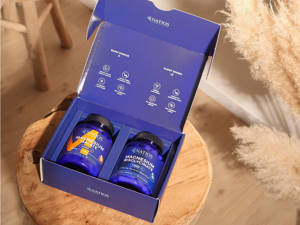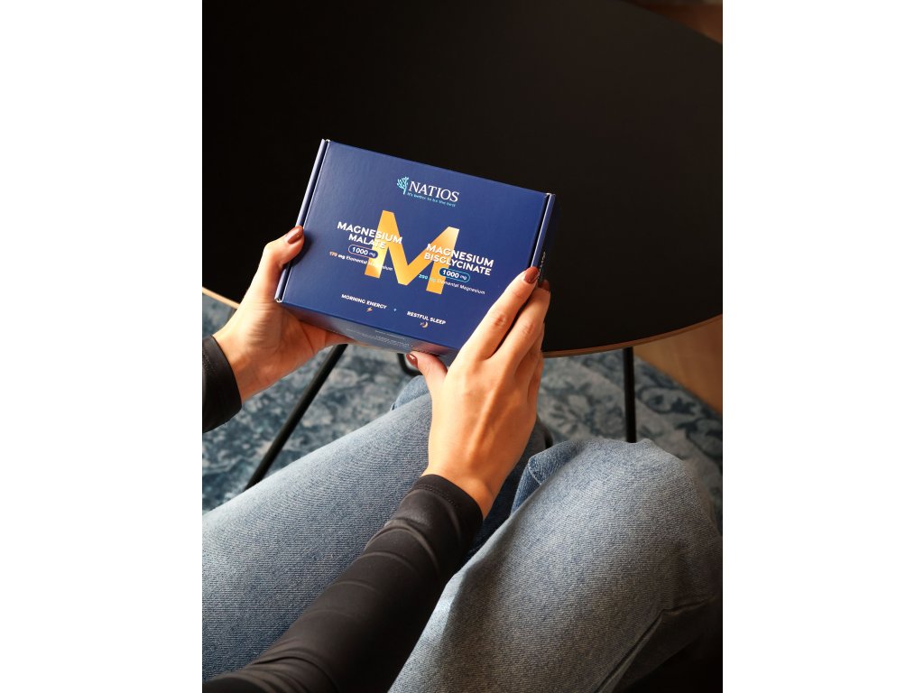 Odkryj podwójną moc magnezu z zestawem prezentowym NATIOS, który zawiera dwa opakowania wysoce przyswajalnych form magnezu – do porannego wsparcia energii i walki ze zmęczeniem oraz na wieczorną relaksację i rozluźnienie mięśni.