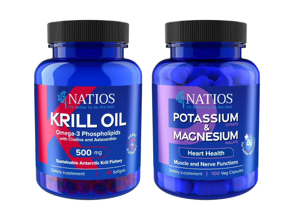 Zestaw przeznaczony jest dla osób, które chcą wspierać zdrowie sercowo-naczyniowe, utrzymać prawidłowe ciśnienie krwi oraz zadbać o witalność serca i naczyń krwionośnych. Łączy NATIOS Krill Oil z astaksantyną oraz NATIOS Potassium & Magnesium – przemyślane duo skoncentrowane na sercu, naczyniach i pracy mięśni.