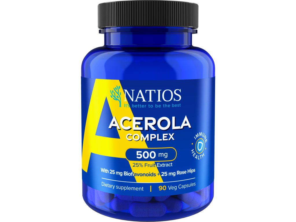 NATIOS Acerola Complex – naturalne źródło witaminy C z owoców aceroli, wzbogacone o bioflawonoidy dla lepszej przyswajalności. Witamina C przyczynia się do prawidłowego funkcjonowania układu odpornościowego i zmniejszenia uczucia zmęczenia oraz znużenia. Świetny wybór na okres zimowy, przy zmęczeniu i zwiększonym obciążeniu psychicznym.