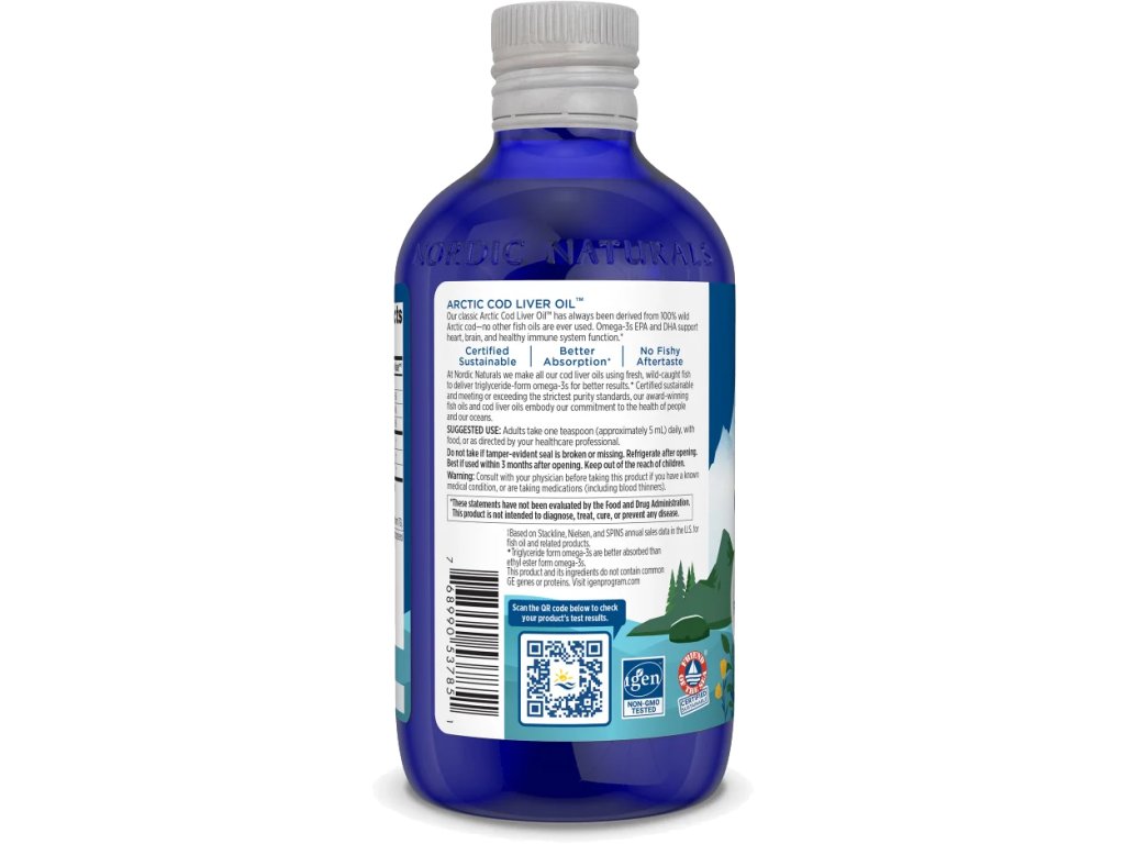 Nordic Naturals Arctic Cod Liver Oil, Olej z wątroby dorsza, Niearomatyzowany, 237 ml