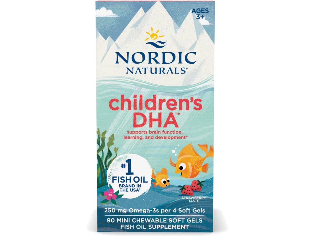 Nordic Naturals Children's DHA, Omega-3 dla dzieci, 250 mg, Truskawka, 90 mini kapsułek softgel