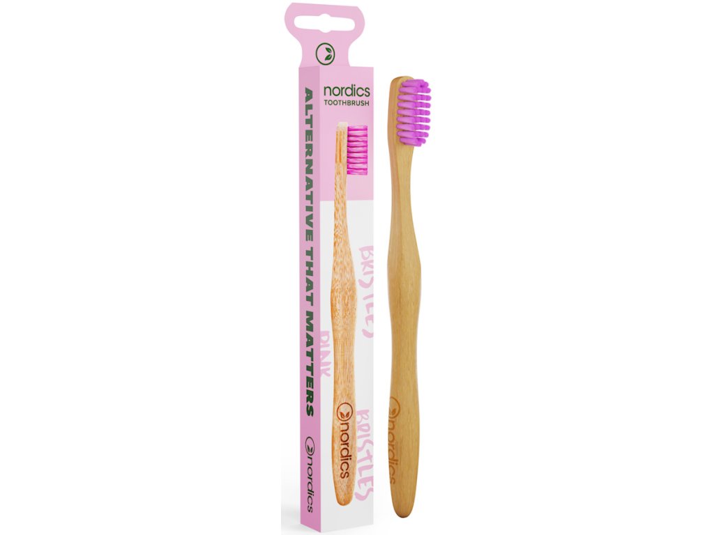 Nordics Bambusowa szczoteczka do zębów, Średnio twarda - Różowa