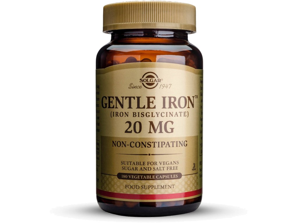 Solgar Gentle Iron, Bisglicynian żelaza, 20 mg, 180 kapsułek roślinnych