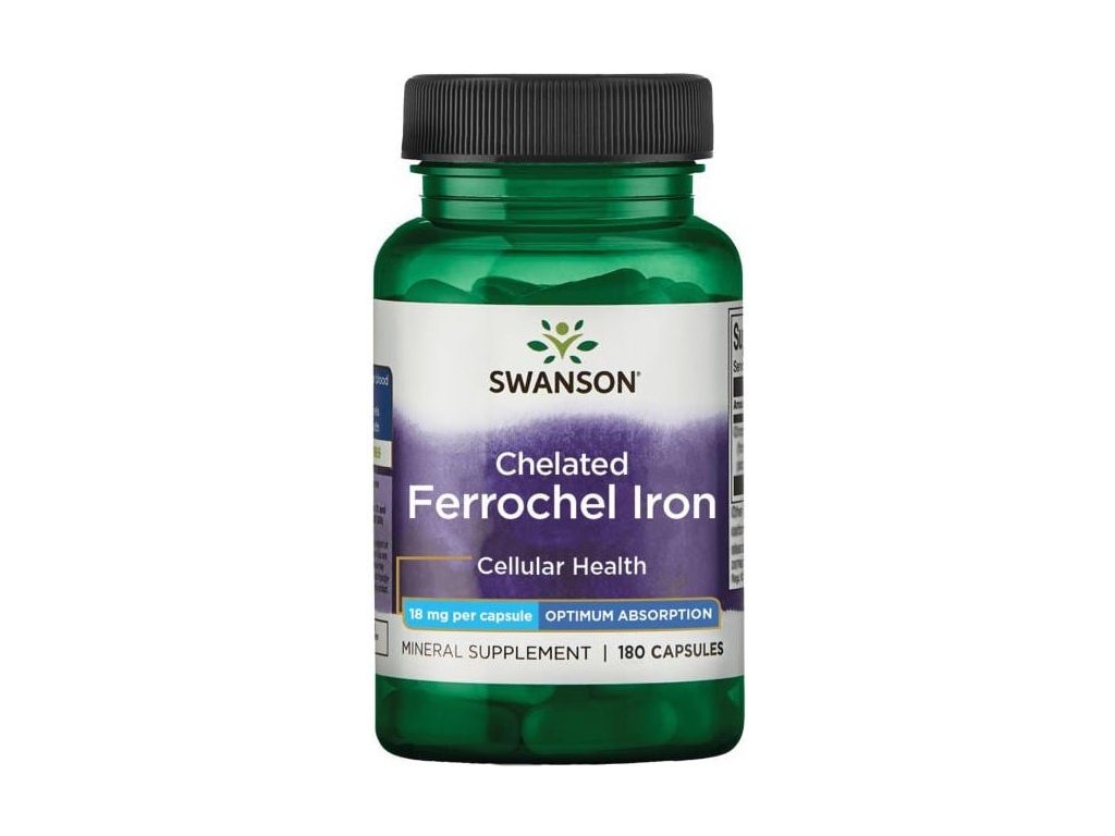Swanson Ferrochel Iron Chelated, Żelazo bisglicynian, 18 mg, 180 kapsułek
