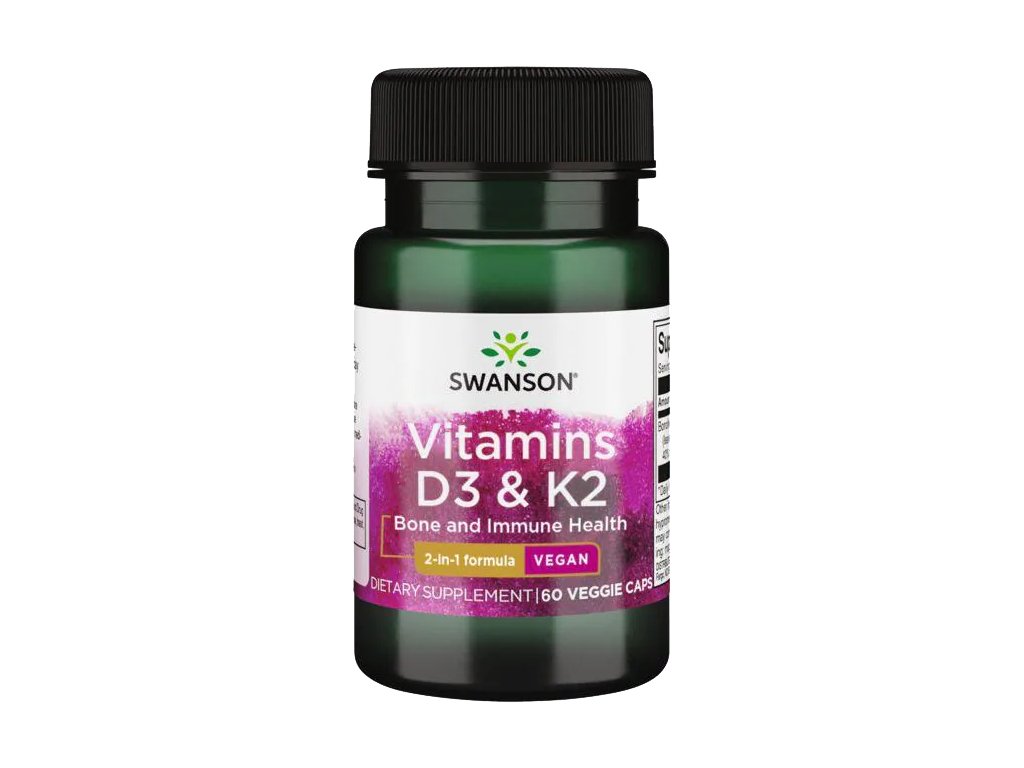 Swanson Witaminy D-3 & K-2, 2000 IU & 75 μg, 60 kapsułek roślinnych