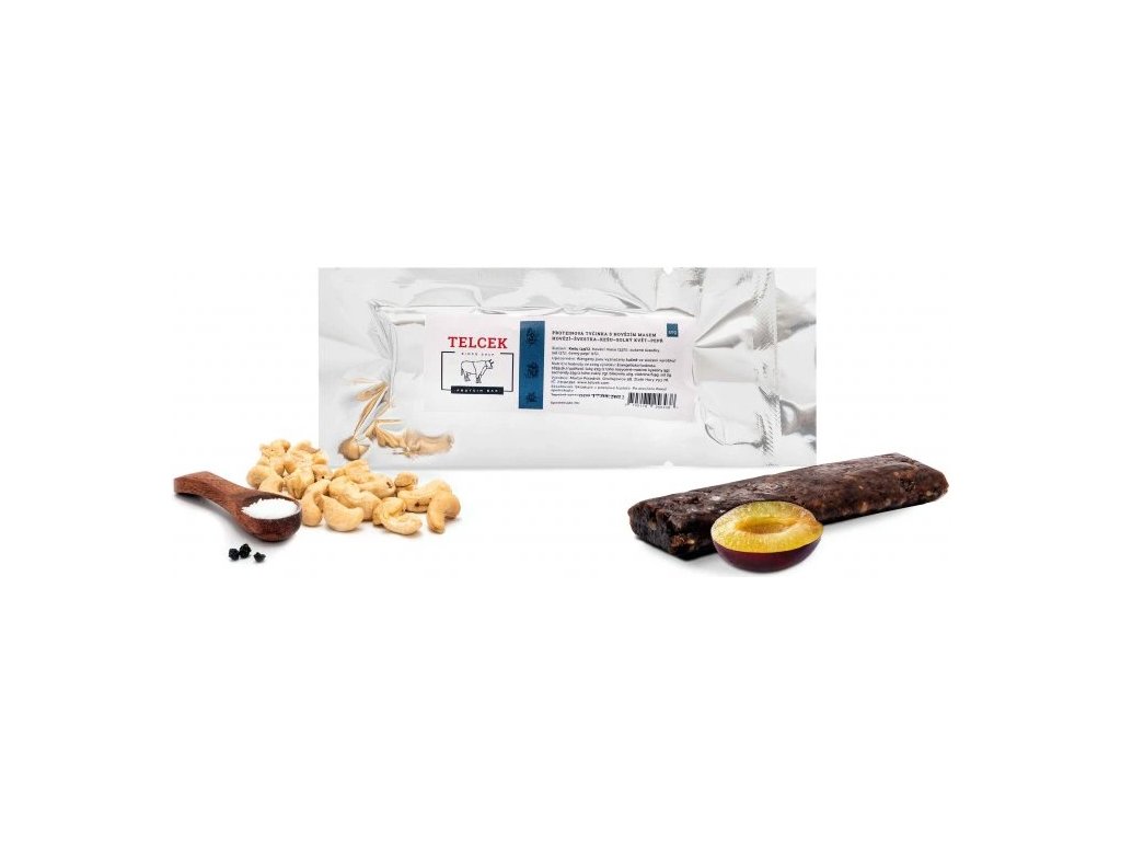 TELCEK Wołowy baton proteinowy (wołowina, nerkowce, śliwki, sól i pieprz), 50 g