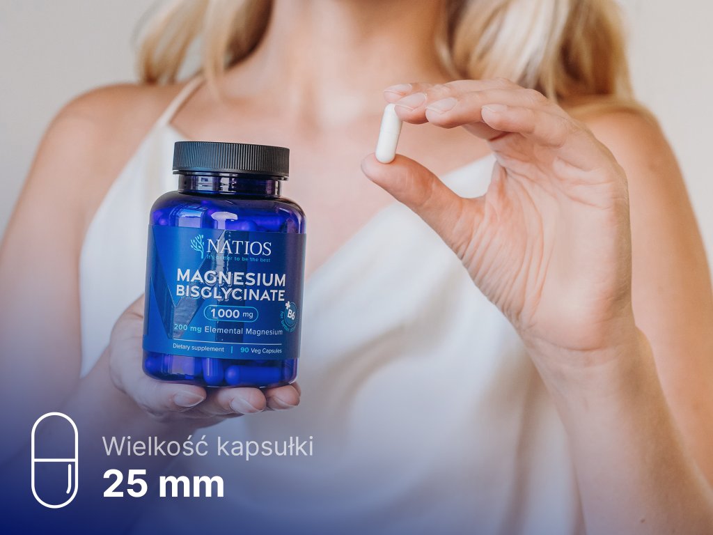 NATIOS Magnesium Bisglycinate 1000 mg + B6, 90 weg. kapsułek (magnez elem. 200 mg)