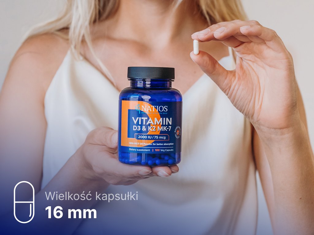 Natios Witamina D3 i K2 oferuje potężne połączenie dwóch ważnych witamin, które są kluczowe nie tylko dla utrzymania zdrowia kości, ale także dla wzmocnienia funkcji odpornościowych. Suplement ten zawiera 2000 j.m. witaminy D3 w każdej kapsułce, zapewniając pokrycie dziennego zapotrzebowania organizmu. Dzięki zawartości witaminy K2 powstaje synergiczne połączenie, które znacznie zwiększa skuteczność. Witamina K2 odgrywa kluczową rolę w metabolizmie wapnia, kierując go do miejsc, gdzie jest naprawdę potrzebny.