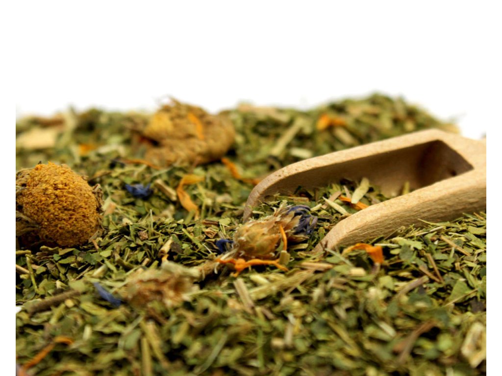 - Składniki ziołowe: suszony liść mięty pieprzowej, kawałki posiekanej trawy cytrynowej, płatki bławatka, suszone płatki nagietka.