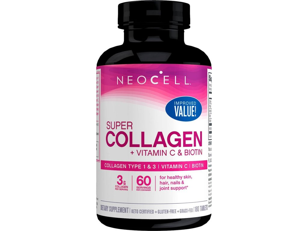 NeoCell Super Collagen Vitamin C & Biotin, Kolagen typu I i III z Witaminą C i Biotyną, 180 tabletek